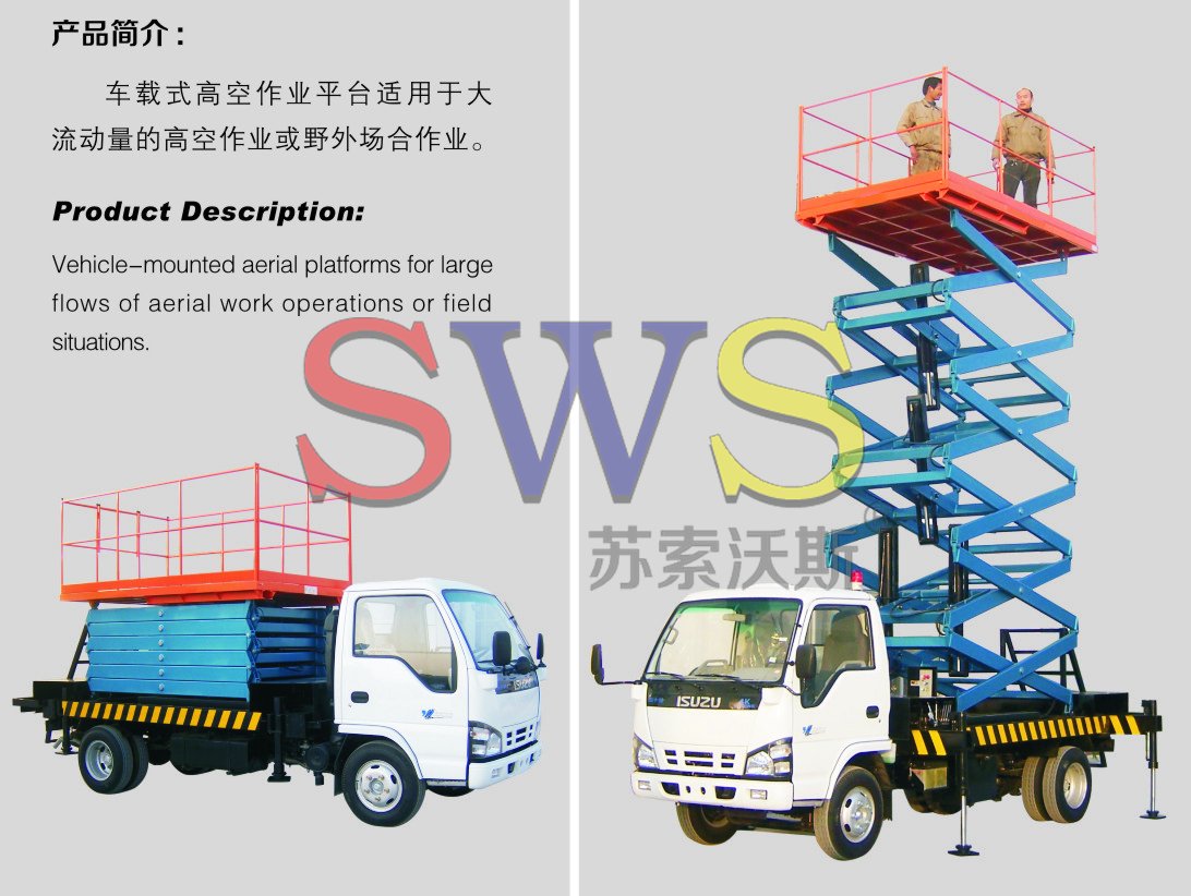 v   高空作業(yè)平臺與電瓶車或汽車組合在一起
